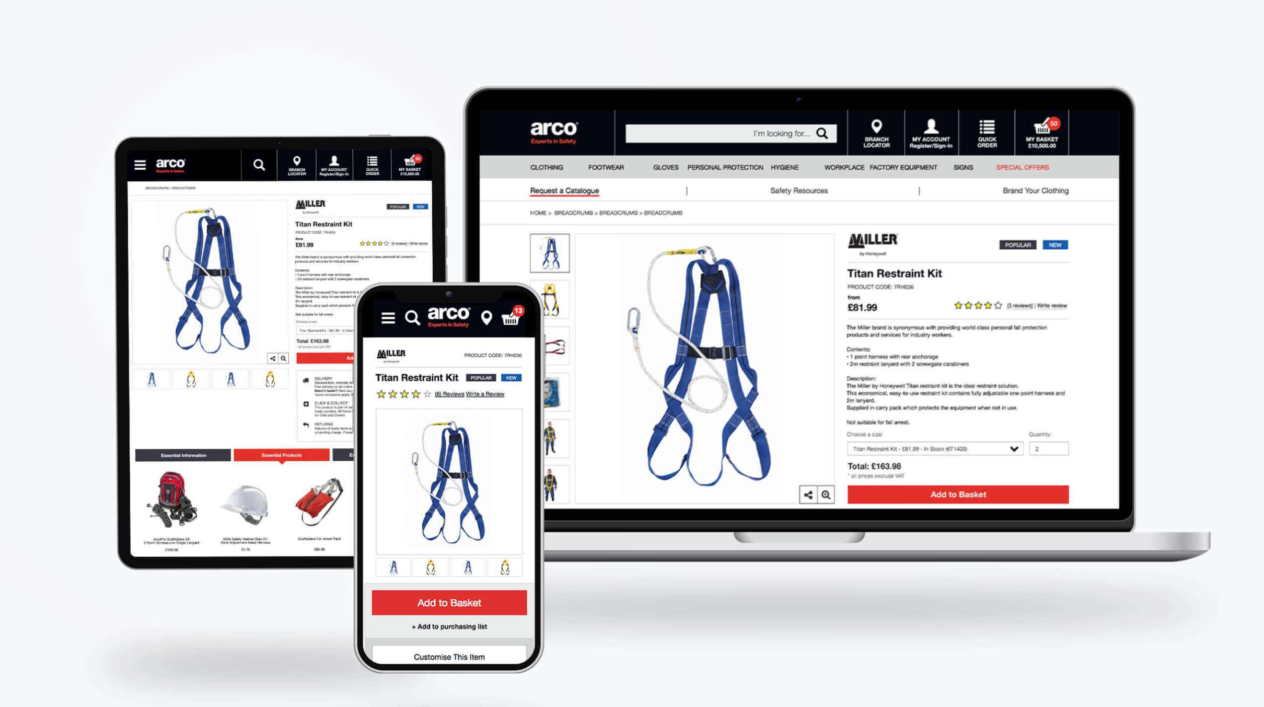 With a functional but dated ecommerce site not available to all customers, costly printed brochures and a busy customer services helpdesk, Arco wanted to elevate the customer experience for business large and small, via a new digital presence that would: