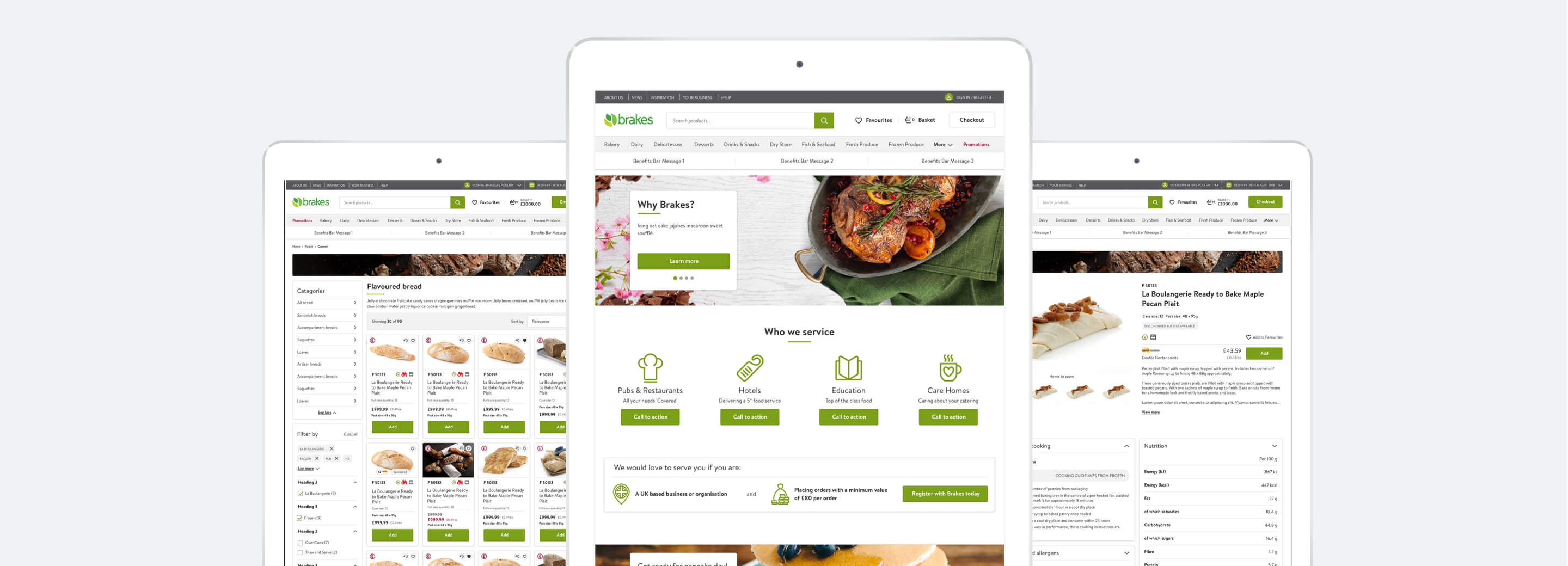 An open, cohesive digital presence for the Brakes brands based on a stripped back, highly usable design that allows customers to understand the benefits the business can offer, sign-up easily and find and purchase the items they need.