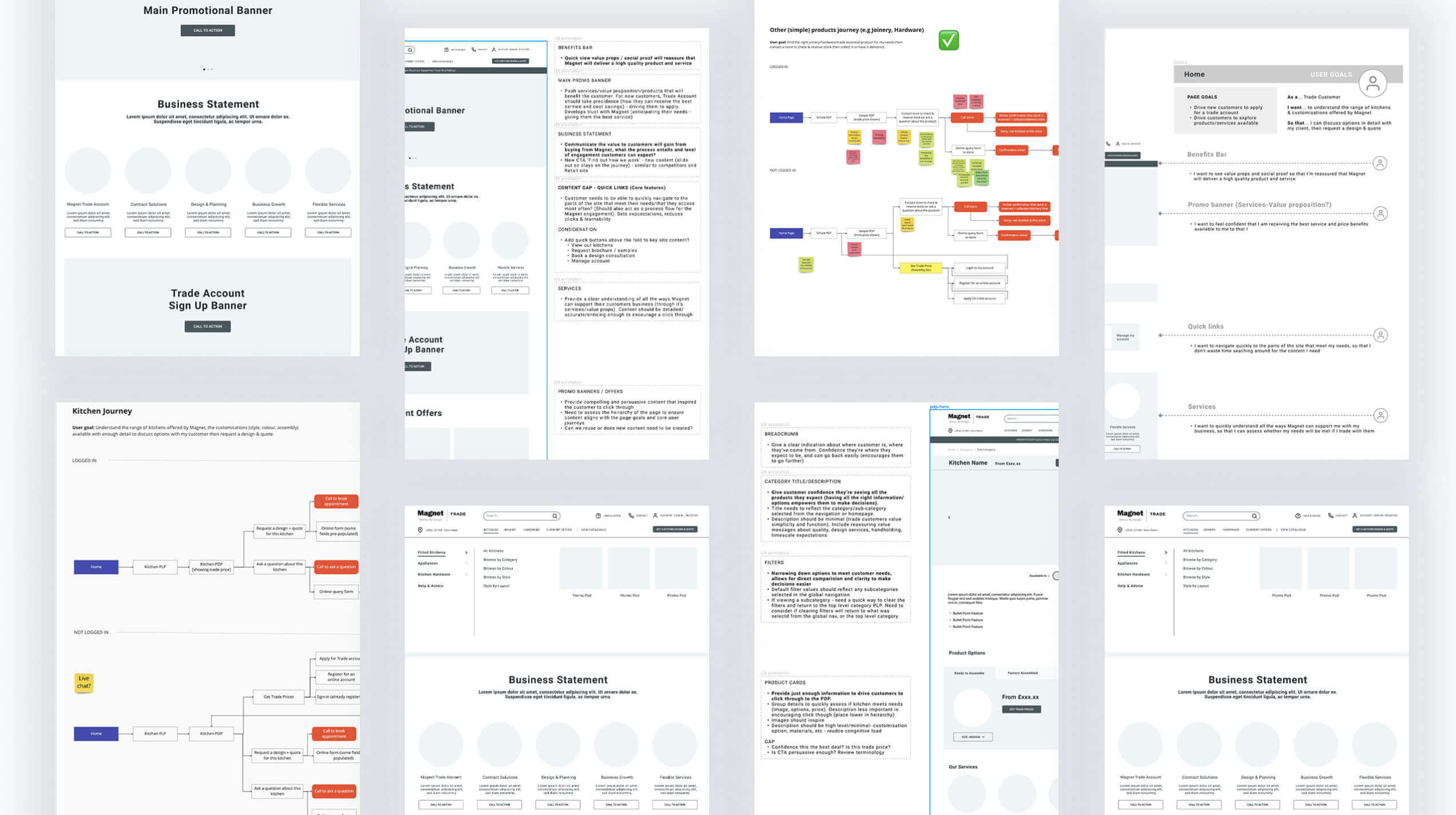 The work of the tactical workstream was informed by insights from the strategic team, but focused on laying the foundations for growth by creating a new visual direction for the business, supported by a design system and full redesign of the Magnet Trade website, based on our UX accelerator templates and incorporating quick-wins and other improvements identified by the strategic team.